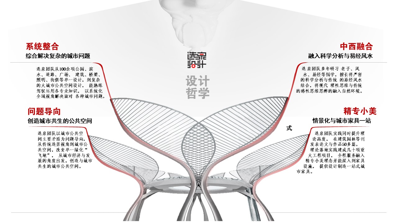 選泉團隊實踐同時提升理論高度,在建筑園林等刊發(fā)表論文與作品50多篇。理論落地實踐建成幾十項重大工程項目,全程服務融入精專小美理念并能深入到街具設施,提供設計制造一站式城市街具。