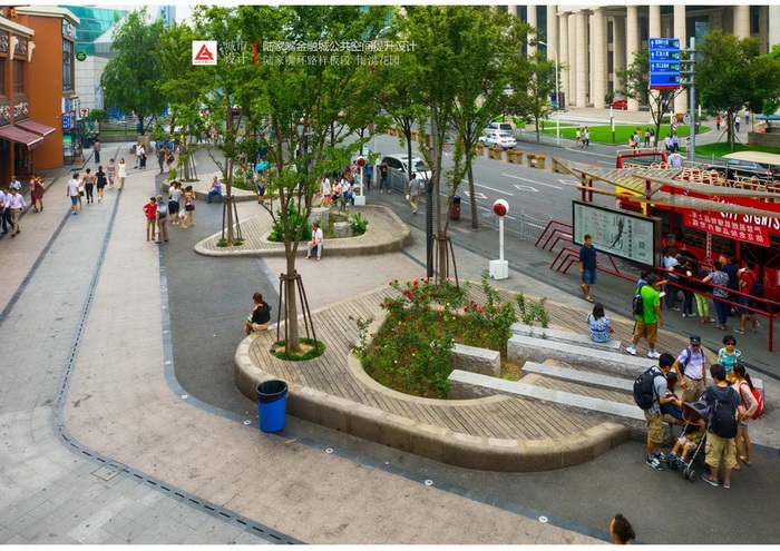 陸家嘴有知名的中心綠地,雖然大但使用性可達(dá)性差,有美麗的濱江綠帶但間斷對(duì)內(nèi)沒(méi)有連續(xù),有繁忙的街頭但卻沒(méi)有可停留的綠地。針對(duì)問(wèn)題,改造道路“線(xiàn)性綠地空間”,協(xié)調(diào)樓宇置換出“塊狀綠地空間”,并將線(xiàn)狀,塊狀公共空間有奇機(jī)串聯(lián),整合,最終形成呈網(wǎng)絡(luò)斑塊分布的“陸家嘴口袋公園系統(tǒng)”,他們面積小,但安全、尺度宜人,內(nèi)設(shè)人性實(shí)施,滿(mǎn)足不同人群需求,充滿(mǎn)活力和人文情懷。目前已經(jīng)建成了東方明珠旁的“錦庭雨洪花園廣場(chǎng)”、大華銀行前的休閑綠地、竹園商貿(mào)區(qū)東方國(guó)際大廈旁的午后休閑花園、金洲街銀洲街東城路區(qū)塊線(xiàn)性公共空間提升、陸家嘴西路富城路區(qū)塊線(xiàn)性公共空間提升等。目前正在實(shí)施的是中國(guó)最高--上海中心大廈的外環(huán)境設(shè)計(jì),我們以功能導(dǎo)向在上海中心四周構(gòu)建一條曲線(xiàn)的白領(lǐng)休閑、健身步道,在其中有序穿插精致的休閑服務(wù)空間,并置入除霾降溫、吸煙站、直飲水、雨洪等人性化設(shè)施。