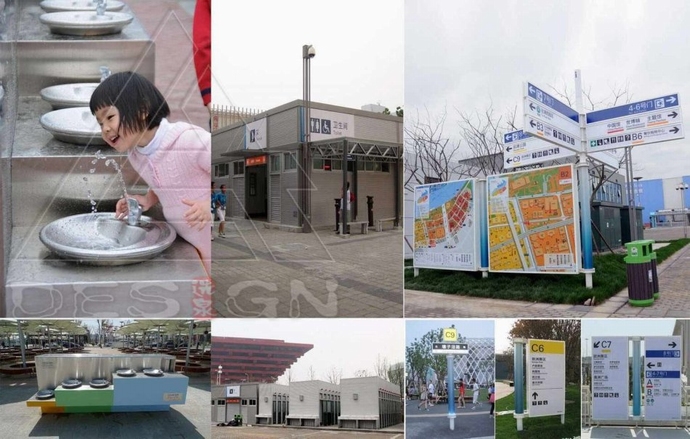 世博公共空間設(shè)計(jì)是一項(xiàng)綜合性極強(qiáng)的工作,除了場(chǎng)地設(shè)計(jì)本身外,設(shè)計(jì)師還要細(xì)致地考慮參觀人流的停留休息、飲水、就餐、如廁、信息獲取等要素,從方便和人性的角度來合理安排必需的公共設(shè)施。